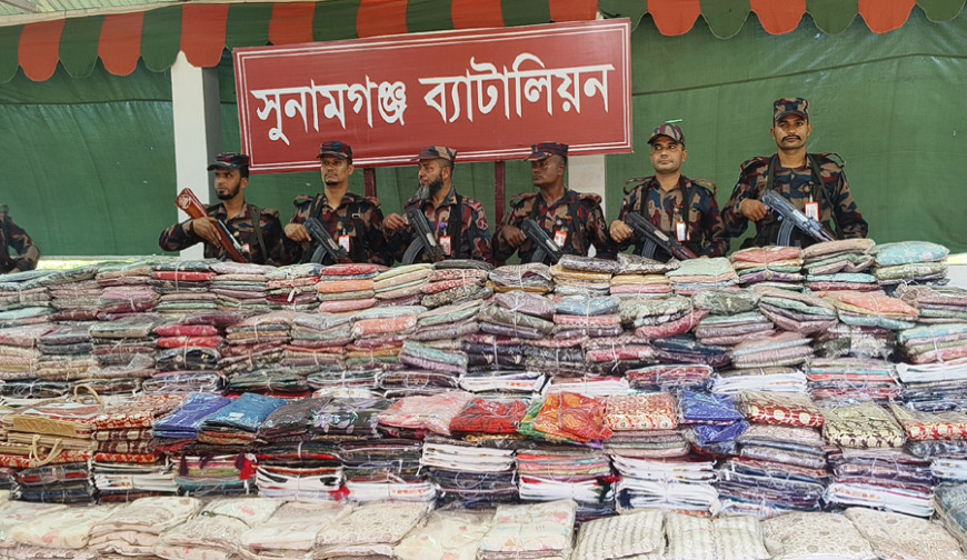 সুনামগঞ্জে বিপুল পরিমাণ ভারতীয় শাড়িসহ কসমেটিকস সামগ্রী জব্দ