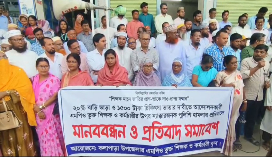 কলাপাড়ায় শিক্ষকদের সড়ক অবরোধ : ঘন্টাব্যাপী মানববন্ধন, যান চলাচল বন্ধ